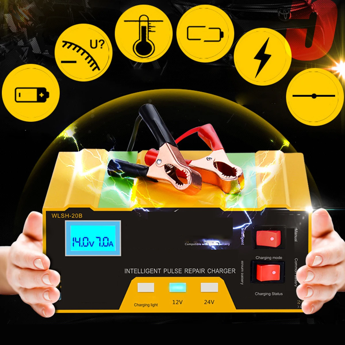 BEST Car Charger 12V/24V Automatic Car Battery Charger Intelligent Pulse Repair Type LED Display 110-250
