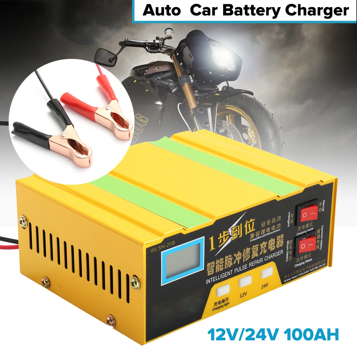 Car Charger 12V/24V Automatic Car Battery Charger Intelligent Pulse Repair Type LED Display 110-250
